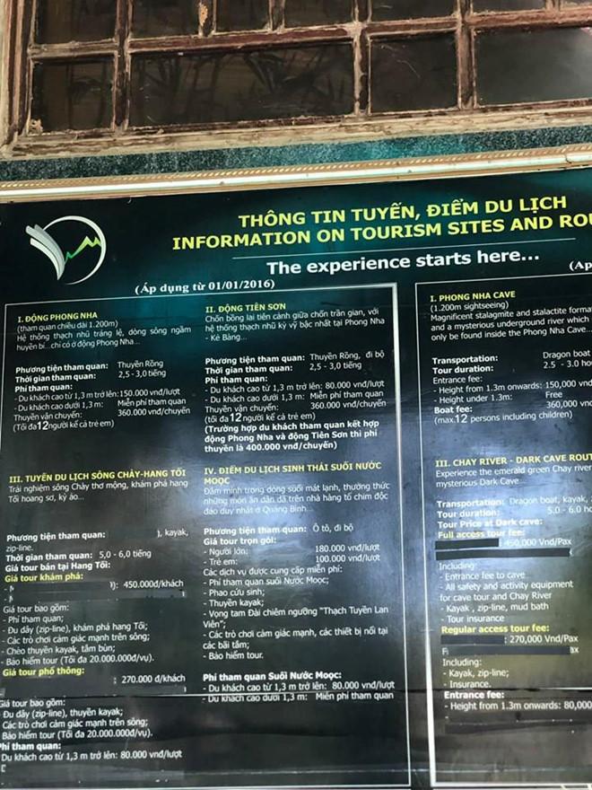 Cụ thể, trong chuyến du lịch Quảng Bình cùng gia đình, cô mua vé vào cổng tham quan động Phong Nha với mức giá 150.000 đồng/người. Dịch vụ thuyền được tính riêng với giá 360.000 đồng/thuyền (tối đa 12 người). Vấn đề phiền phức được nảy sinh khi du khách phải tự tìm người xếp hàng cùng để chia thuyền.