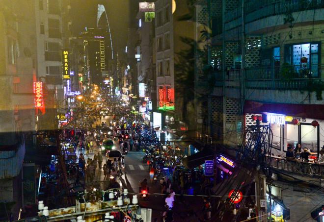 Cảnh tập nập buổi tối tại phố tây Bùi Viện. Ảnh: Thanh Tùng.