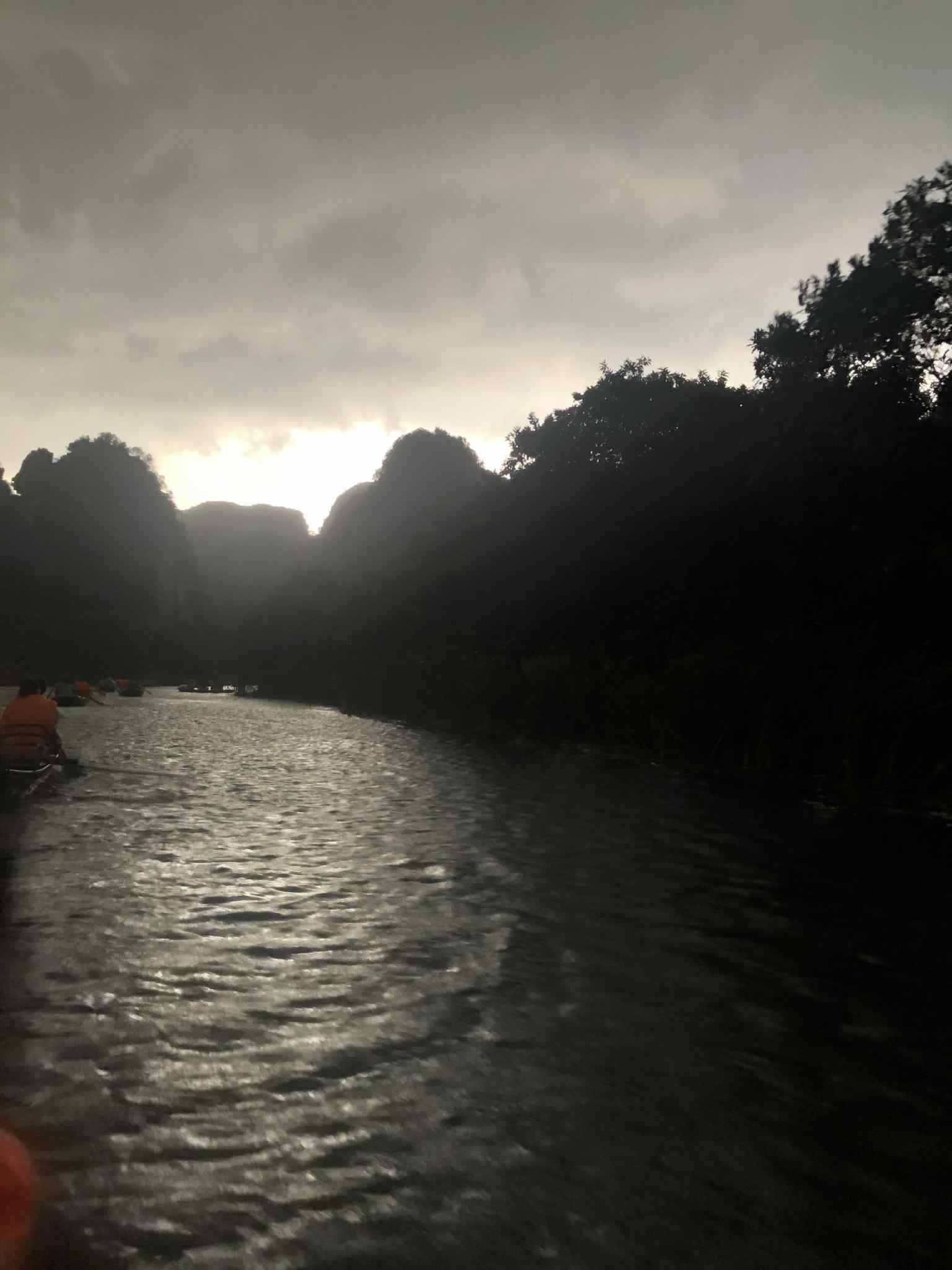 "30 phút đầu tiên, chúng tôi rất vui vẻ ngắm nhìn cảnh đẹp nhưng tới khoảng 5 giờ, mây đen đột ngột kéo đến, trời nổi cơn dông, gió dữ dội. Trên sông lúc đó còn rất nhiều thuyền, chở cả khách Việt Nam lẫn khách nước ngoài.