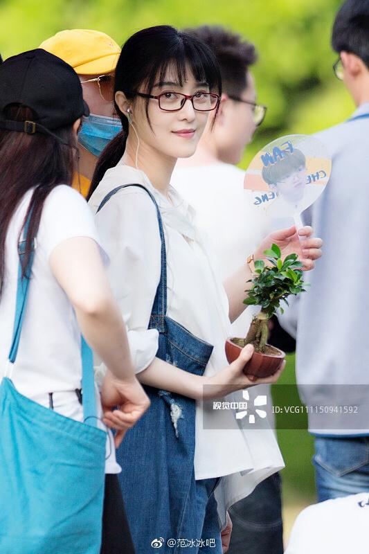 Phạm Băng Băng cũng tích cực lăng xê em trai mọi lúc mọi nơi. Mới đây nhất người đẹp không ngại mang chiếc quạt có mặt em trai đến phim trường để bày tỏ sự ủng hộ cậu em kém 19 tuổi.
