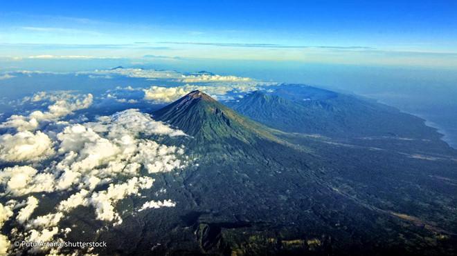 Núi Agung linh thiêng ở đảo Bali nhìn từ trên cao. Ảnh: Putu Artana.