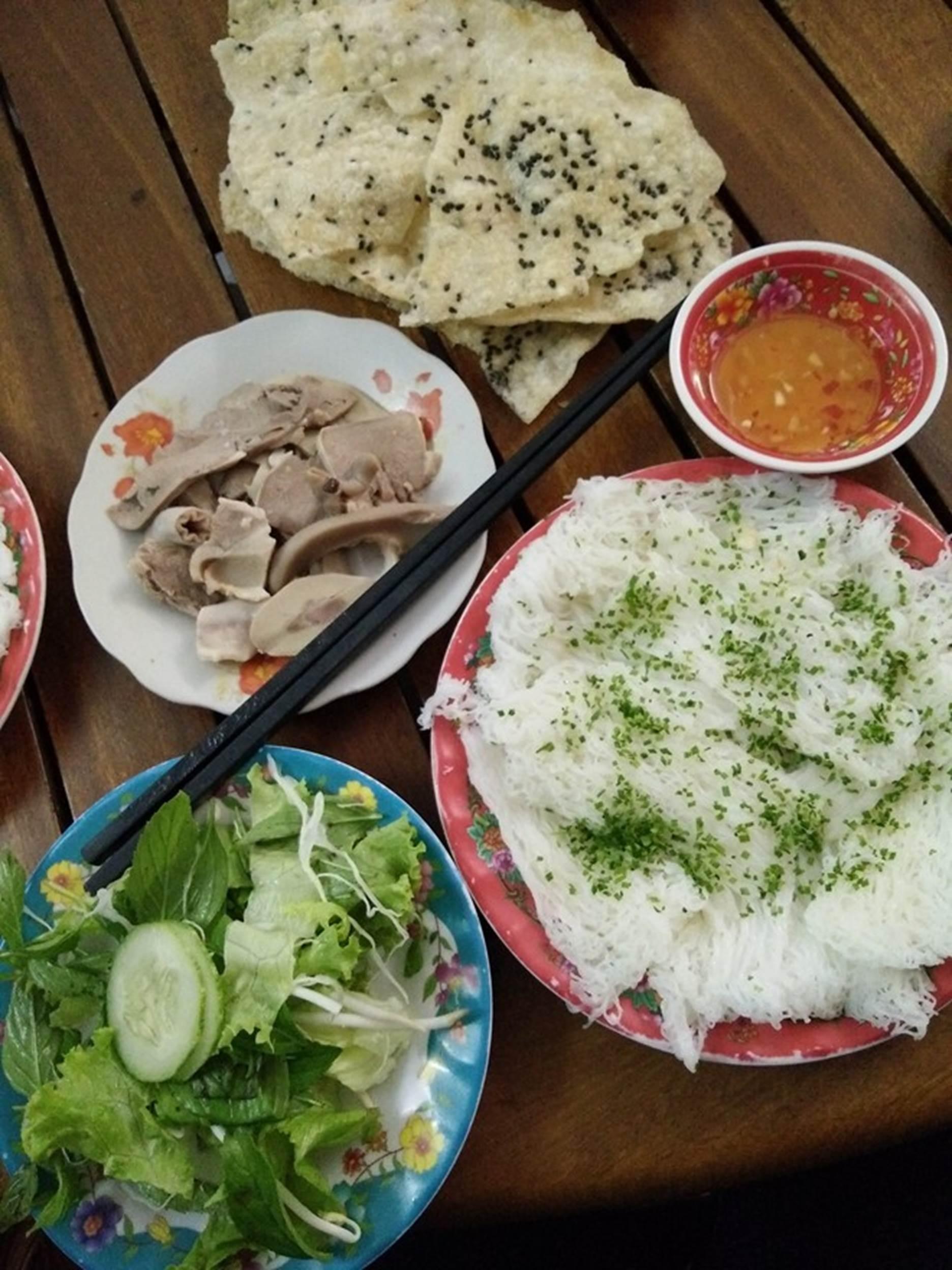 Bữa sáng các bạn đừng bỏ quên món bánh hỏi lòng heo rất ngon, giá 25.000 đồng.