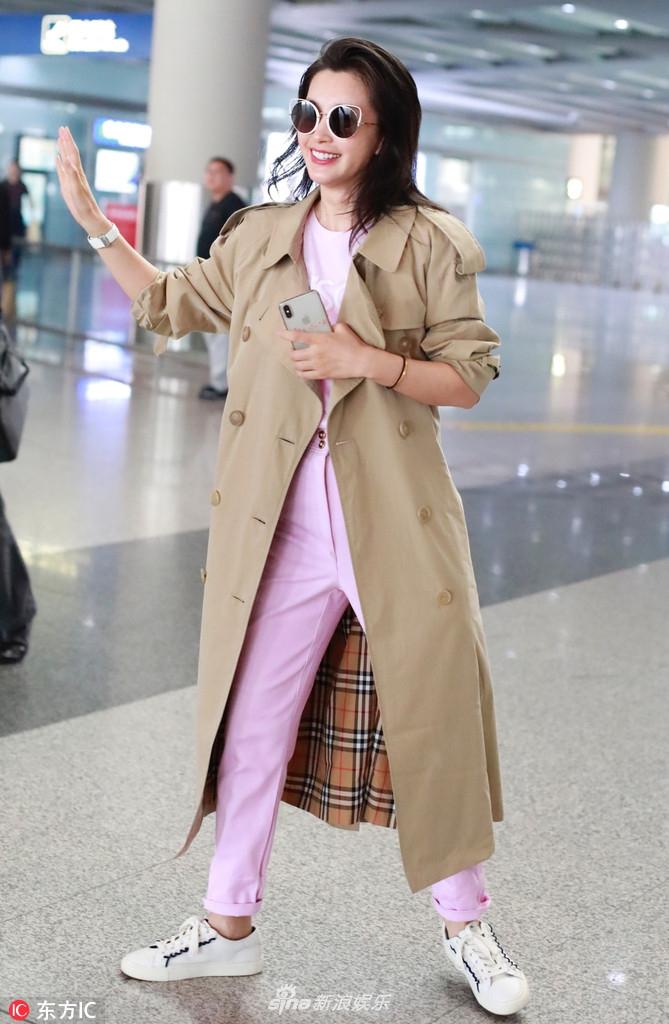 Xuất hiện tại sân bay mới đây, Lý Băng Băng tươi trẻ với công thức mix đồ chẳng thua kém fashionista. Lựa chọn áo trench coat dáng dài Burberry kết hợp set đồ hồng phấn không hề sến súa, người đẹp thân thiện vầy tay chào fans hâm mộ.
