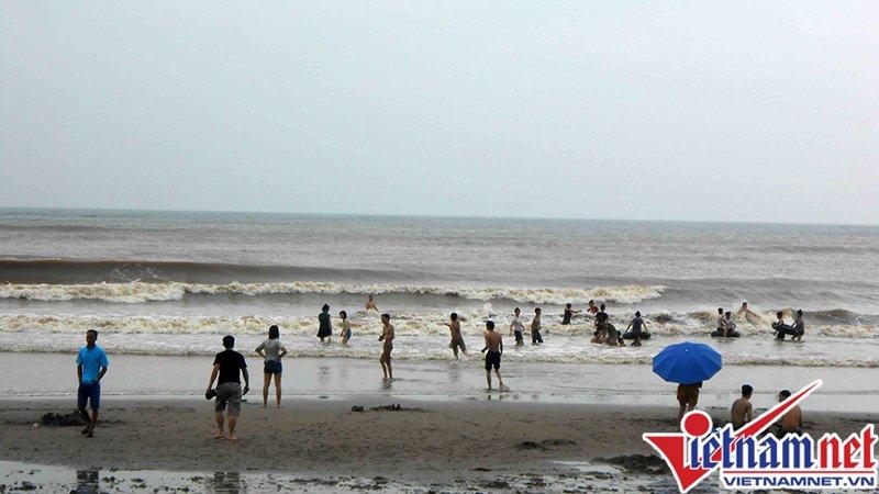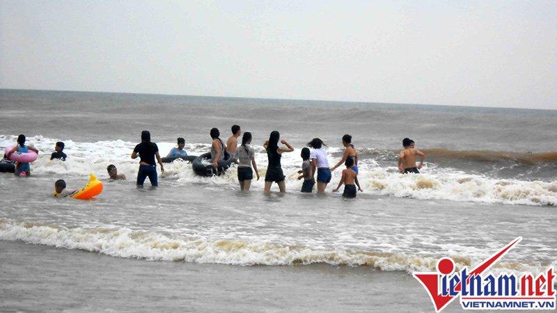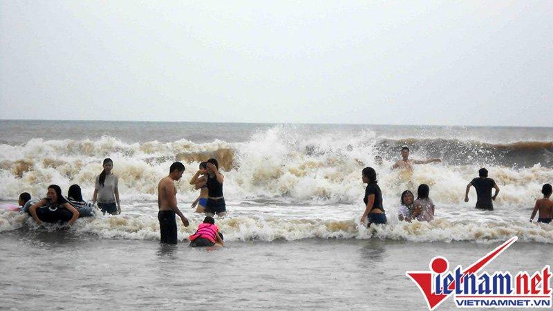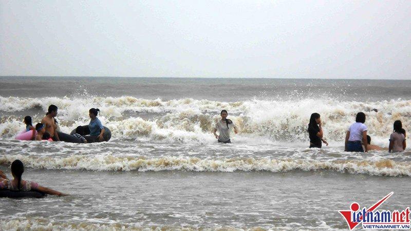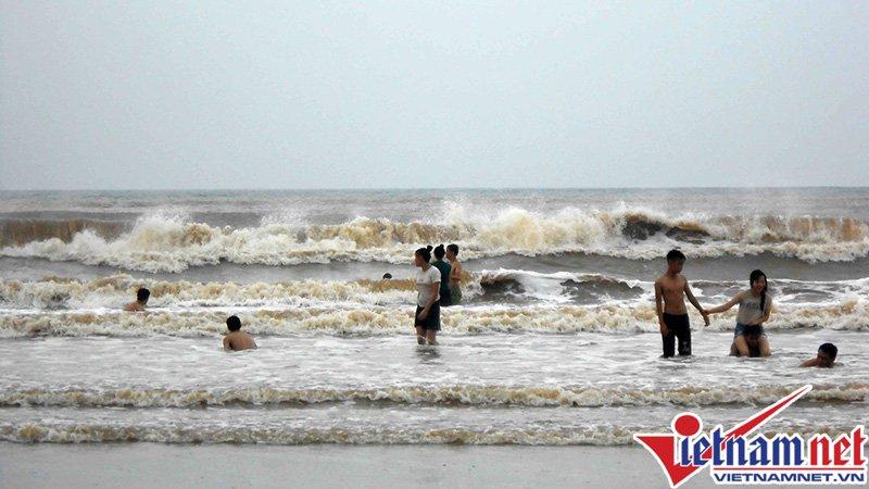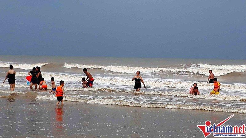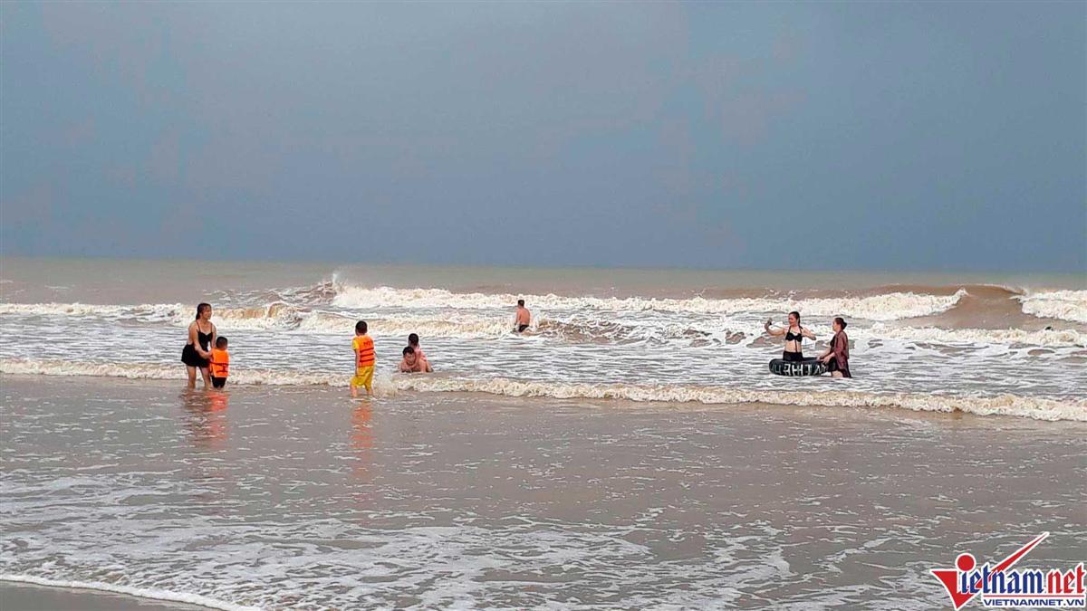 Người lớn trẻ con tắm biển như không biết bão sắp vào