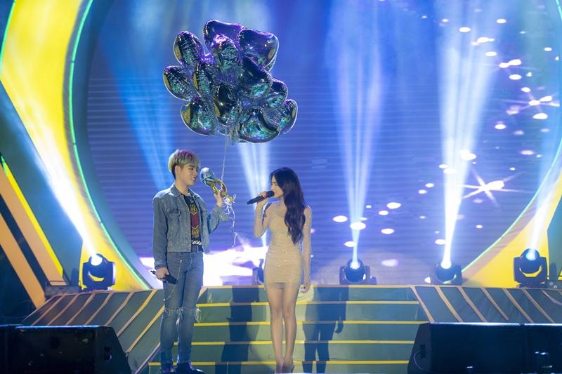 Hòa Minzy xuất hiện với chiếc váy lấp lánh bắt ánh đèn sân khấu mà theo cô không cần đèn vẫn nổi bật. Tiết mục song ca đặc biệt của Hòa Minzy - Đức Phúc đã đẩy không khí tại đây nóng hơn rất nhiều với ca khúc Cứ yêu đi.