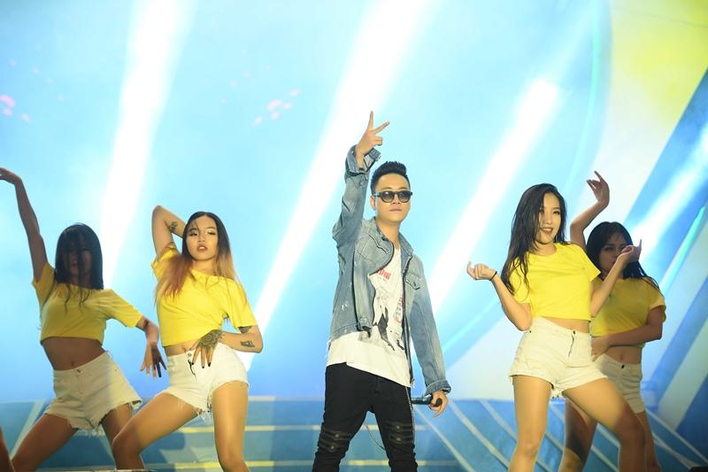 Justa Tee với phong cách cực ngầu thả sức phiêu cùng khán giả Hà Nội với những bản hit: Đã lỡ yêu em nhiều, Forever Alone, Tell Me Why.