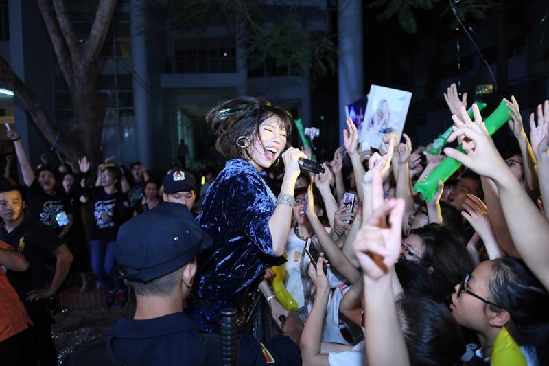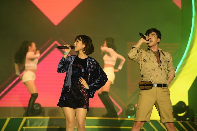 Màn kết hợp của bộ đôi Min – Erik với hit Ghen khiến không khí tại quảng trường đại học thêm bùng nổ. Nữ ca sĩ Min còn bất chấp đi chân trần nhảy cuồng nhiệt trước sự cổ vũ nhiệt tình từ khán giả.