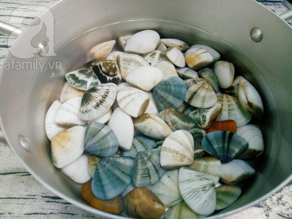 Con chang chang rửa sạch, đem ngâm với nước lạnh khoảng 2 giờ để chang chang nhả cát (nếu có) trong bụng ra. Cho chang chang vào nồi rồi đổ 700ml nước lọc vào ngập chang chang là được. Đặt nồi chang chang lên bếp nấu trên lửa vừa.