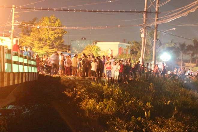 Nhiều người theo dõi công an khám nghiệm hiện trường