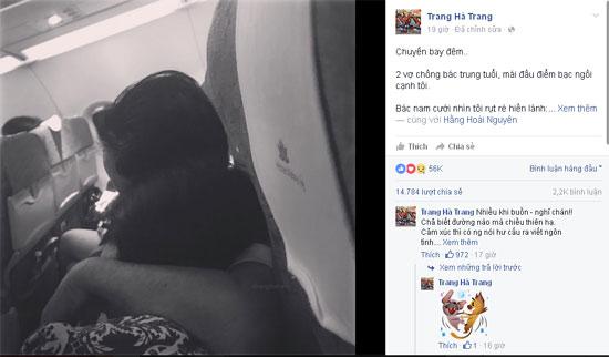 Tôi cứ bị cuốn vào cách hành xử nhẹ nhàng ân tình của 2 con người luống tuổi đó. Cách bác trai tắt đèn đọc sách trên máy bay và nhìn bác gái hỏi liên tục những câu như: