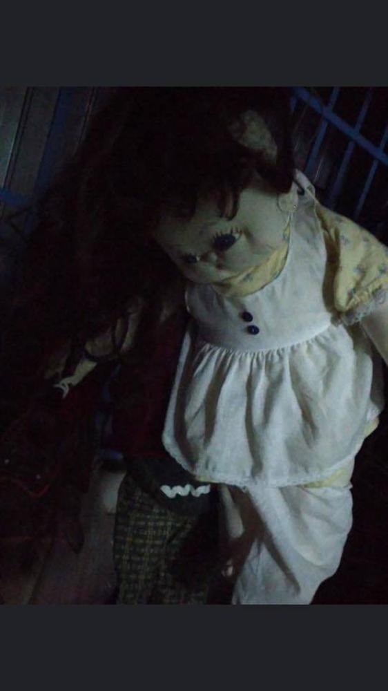 Khoảnh khắc ghi lại, con búp bê mặc váy trắng, mắt trợn ngược, đầu tóc không được buộc gọn gàng. Đã thế, khu vực treo búp bê lại hoàn toàn thiếu sáng, nhìn chẳng khác nào một em bé đang bị đối xử thô bạo.