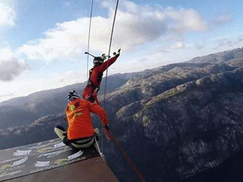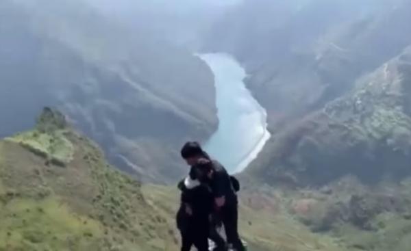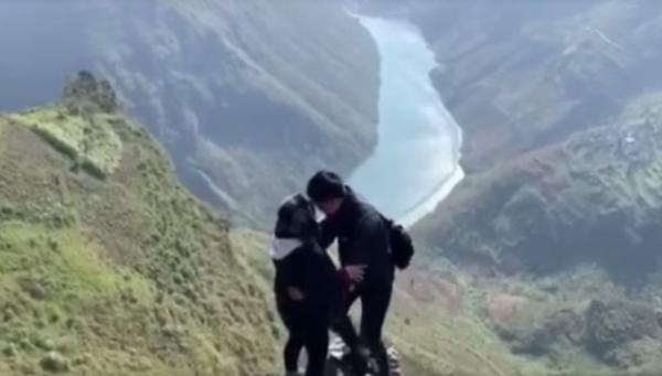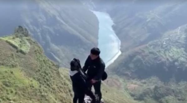 Chàng trai tỏ tình với bạn gái ở vách núi cheo leo.
