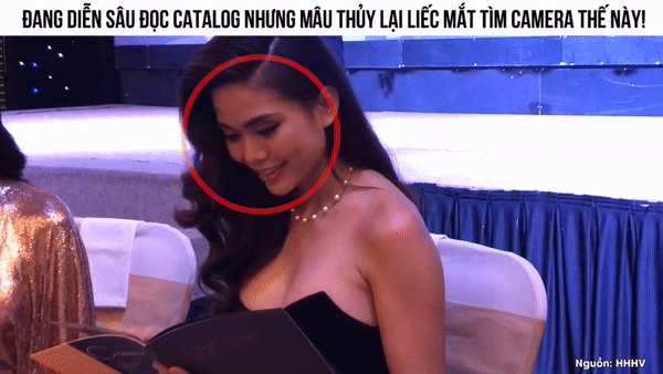 Khoảnh khắc này sẽ "đắt giá" hơn nếu vài giây sau đó Mâu Thủy không bị lộ giây phút sống ảo. Sau một hồi pose dáng và không rõ hướng máy quay, Mâu Thúy láo liên đưa mắt tìm camera rồi quay lại tiếp tục "diễn sâu".