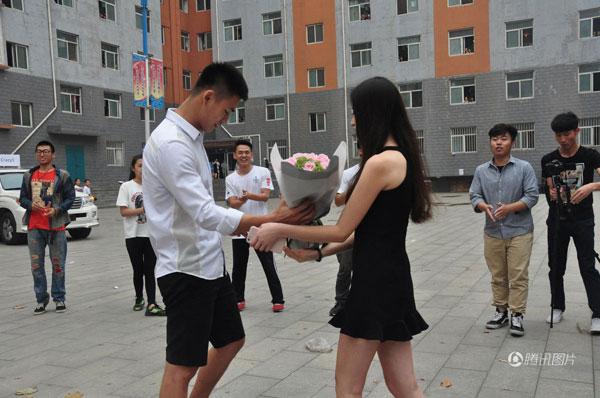 Chàng trai không chỉ chuẩn bị hoa hồng mà còn đặt thiết kế riêng cho cô gái một chiếc dây chuyền rất đẹp. Sau khi bước xuống từ chiếc Maserati rồi nhảy được một nửa điệu flashmod, anh chàng tiến đến trước bạn gái là nữ sinh trường Đại học Địa Chất Trung Quốc và đưa ra lời cầu hôn lãng mạn. Cô gái đã hạnh phúc chấp nhận lời cầu hôn của bạn trai.