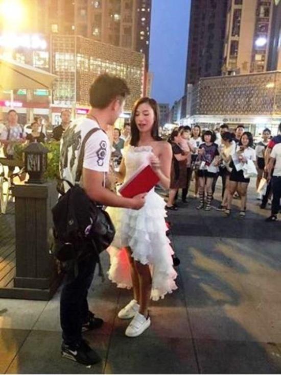 Màn cầu hôn đắt tiền trên được diễn ra bên ngoài khu trung tâm mua sắm Kim Ngưu Vạn Đạt Plaza, thành phố Thành Đô, tỉnh Tứ Xuyên, Trung Quốc.