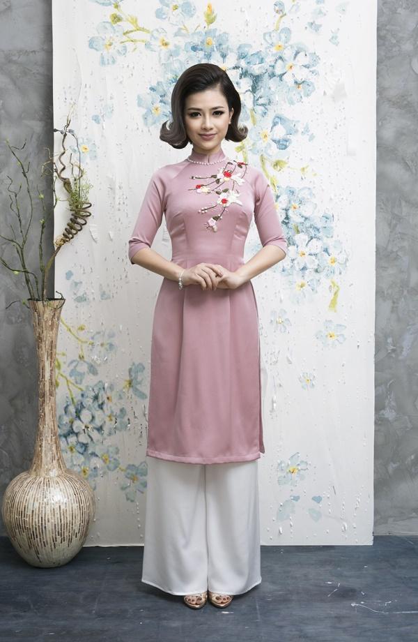 Thiết kế áo dài với tone hồng pastel mang lại cảm giác gần gũi, trẻ trung và ngọt ngào, dù không cần quá