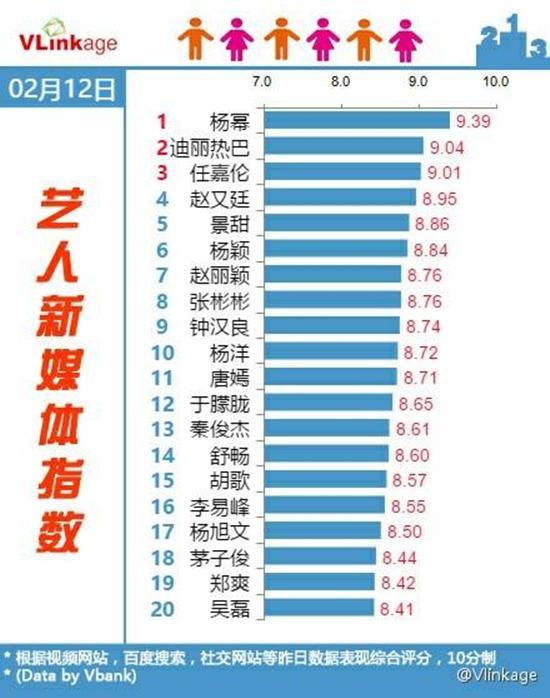Dương Mịch xếp thứ 1 trên bảng xếp hạng truyền thông.