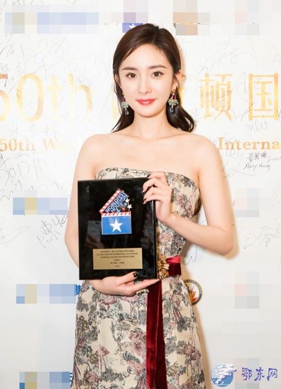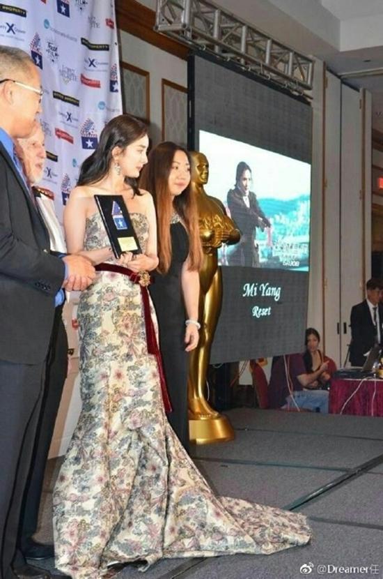 Cách đây 1 tuần, Dương Mịch đã gây chú ý khi sang Mỹ nhận giải Nữ diễn viên xuất sắc tại LHP điện ảnh quốc tế Houston lần thứ 50. Xuất hiện tại sự kiện này, Dương Mịch khoe nhan sắc lộng lẫy trong trang phục hàng hiệu và không quên chia sẻ rằng, cô cảm thấy tự hào khi góp phần quảng bá điện ảnh Trung Quốc đến với thế giới.