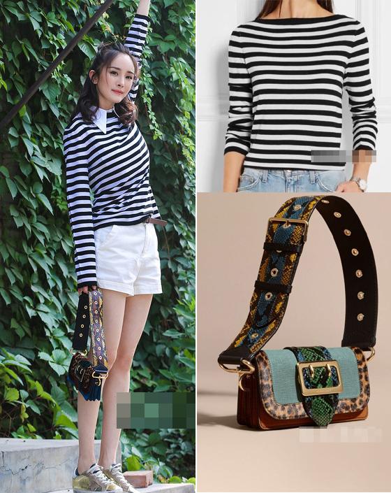 Dương Mịch trẻ trung trên phố với áo kẻ sọc sắc màu kết hợp quần shorts
