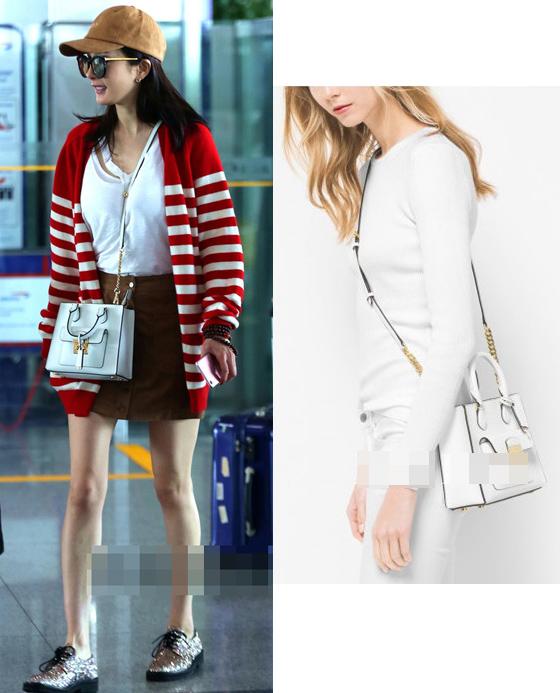 Chiếc túi trắng hiệu Michael Kors là điểm nhấn nhá cho diện mạo của