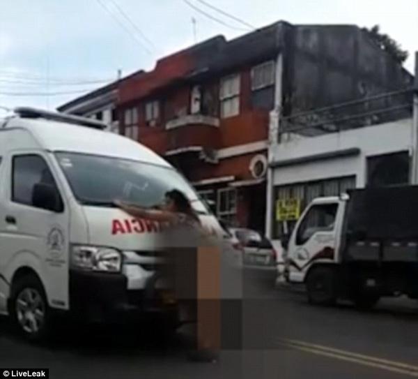 Sau khi chiếc xe cứu thương phóng đi, người phụ nữ nhanh chóng lột bỏ toàn bộ quần áo và chạy về phía những chiếc xe khác khiến đường phố trở nên ách tắc.