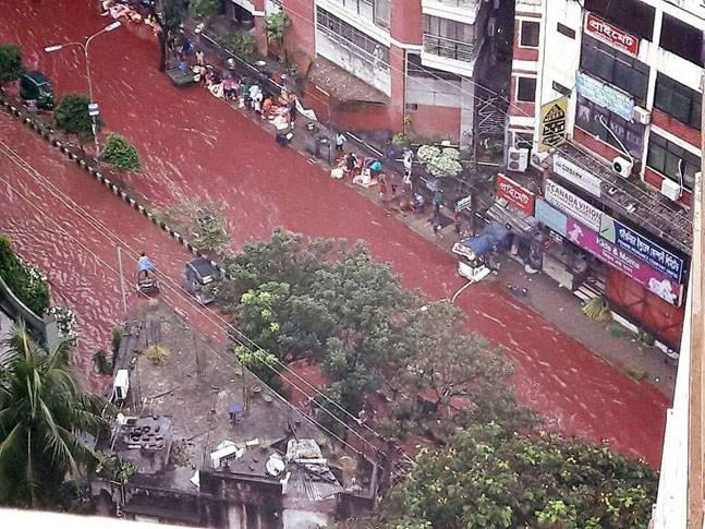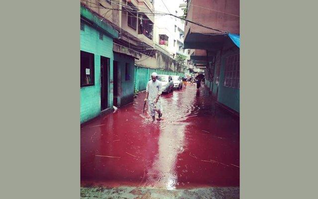 Tuy nhiên, vào ngày thứ Ba vừa qua (13/9), việc giết mổ quá nhiều động vật, cộng thêm tình hình mưa to gió lớn đã khiến nhiều tuyến phố ở Dhakar, Bangladesh ngập trong những dòng nước màu đỏ, hòa lẫn của nước mưa và máu. Cảnh tượng ghê rợn khiến nhiều người không khỏi rùng mình.