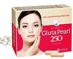 Viên uống dưỡng trắng da Gluta Pearl 250, sản phẩm của Gold Life Inc. - USA, chứa bộ 3 hoạt chất dưỡng trắng da: Glutathion, Alpha Lipoic Acid và vitamin C, tạo tác động 3 chiều, ngăn chặn sự sản sinh hắc tố da suốt 5 tầng cấu trúc da, cho làn da toàn thân trắng mịn ngọc ngà, làm giảm hẳn sạm, nám và các rối loạn sắc tố da như: da thâm, tàn nhang, đốm nâu. Hơn nữa, Gluta Pearl 250 giúp chống lão hóa, tái cấu trúc da, cho làn da căng mịn, rạng ngời.