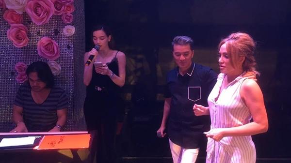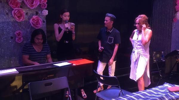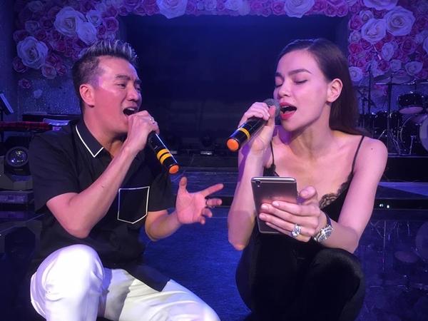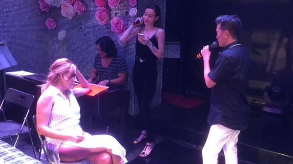 Có mặt tại buổi tập, nữ hoàng giải trí Hồ Ngọc Hà diện cây đen tôn lên vẻ khỏa khoắn, gợi cảm. Mặc dù đã rất khuya nhưng giọng ca Keep Me In Love vẫn xinh đẹp, tươi tắn và nhiều năng lượng. Mr Đàm mặc đơn giản áo sơ mi, quần Âu để luyện tập cho thoải mái.