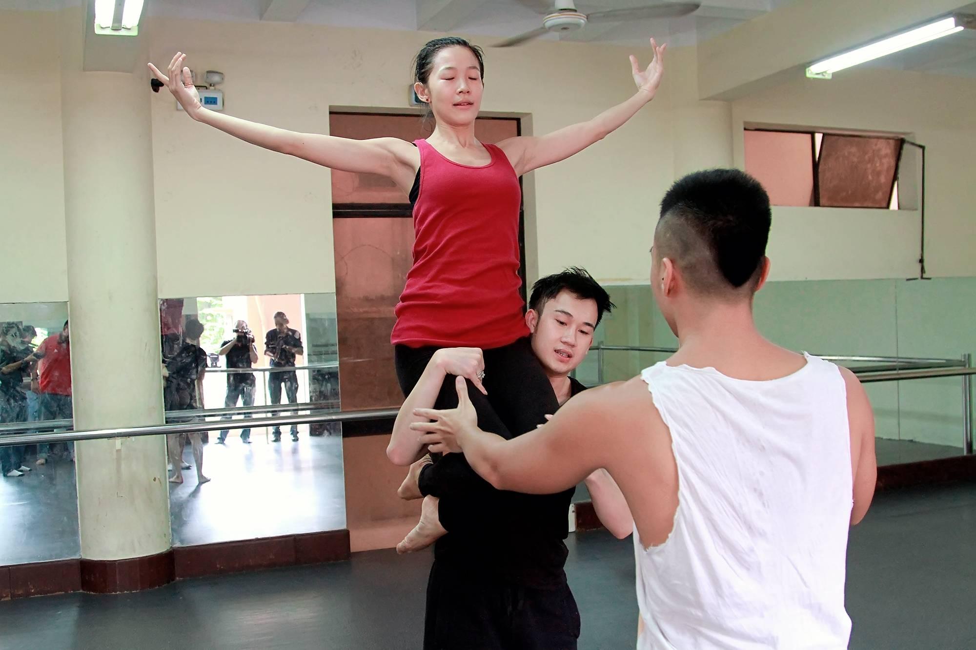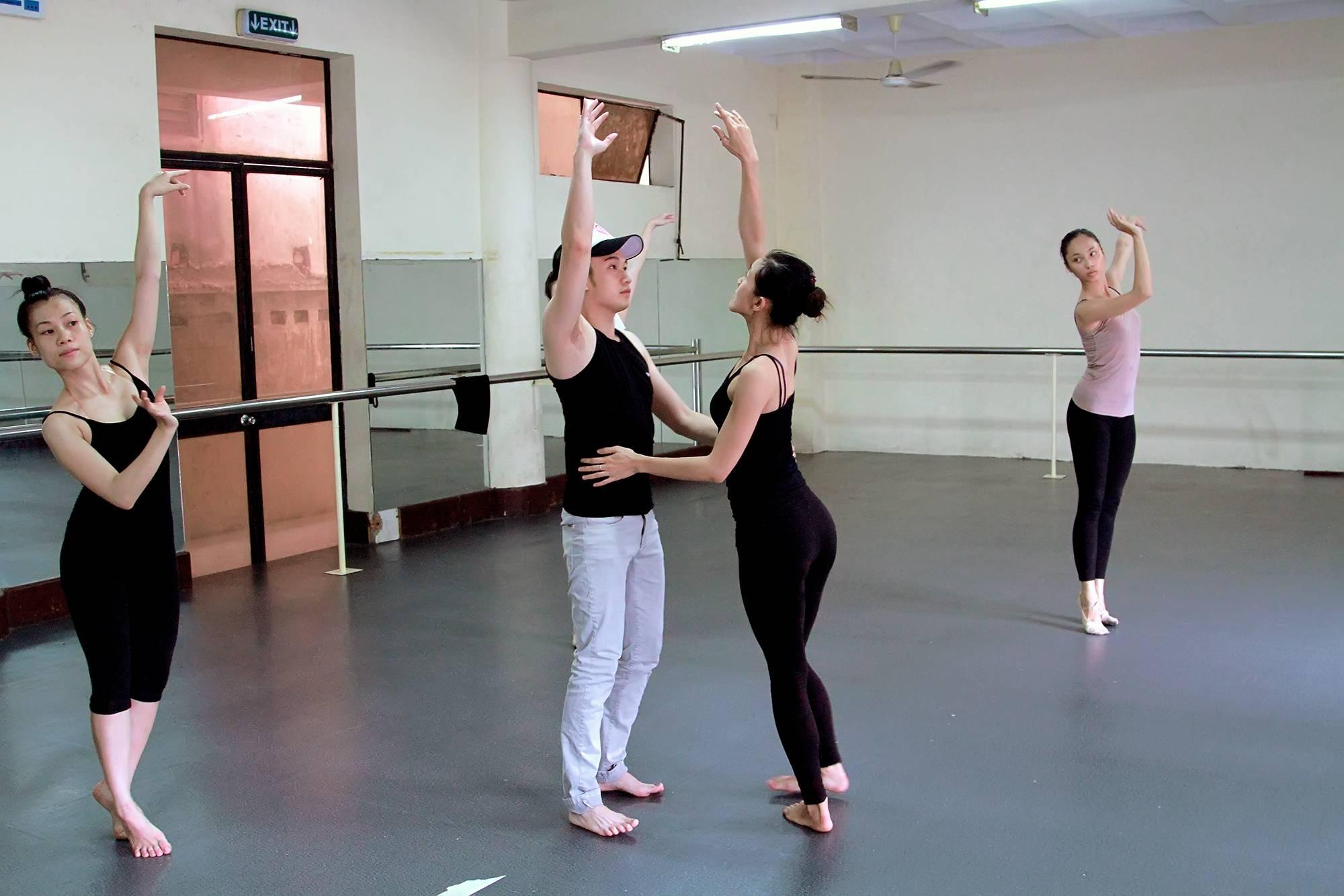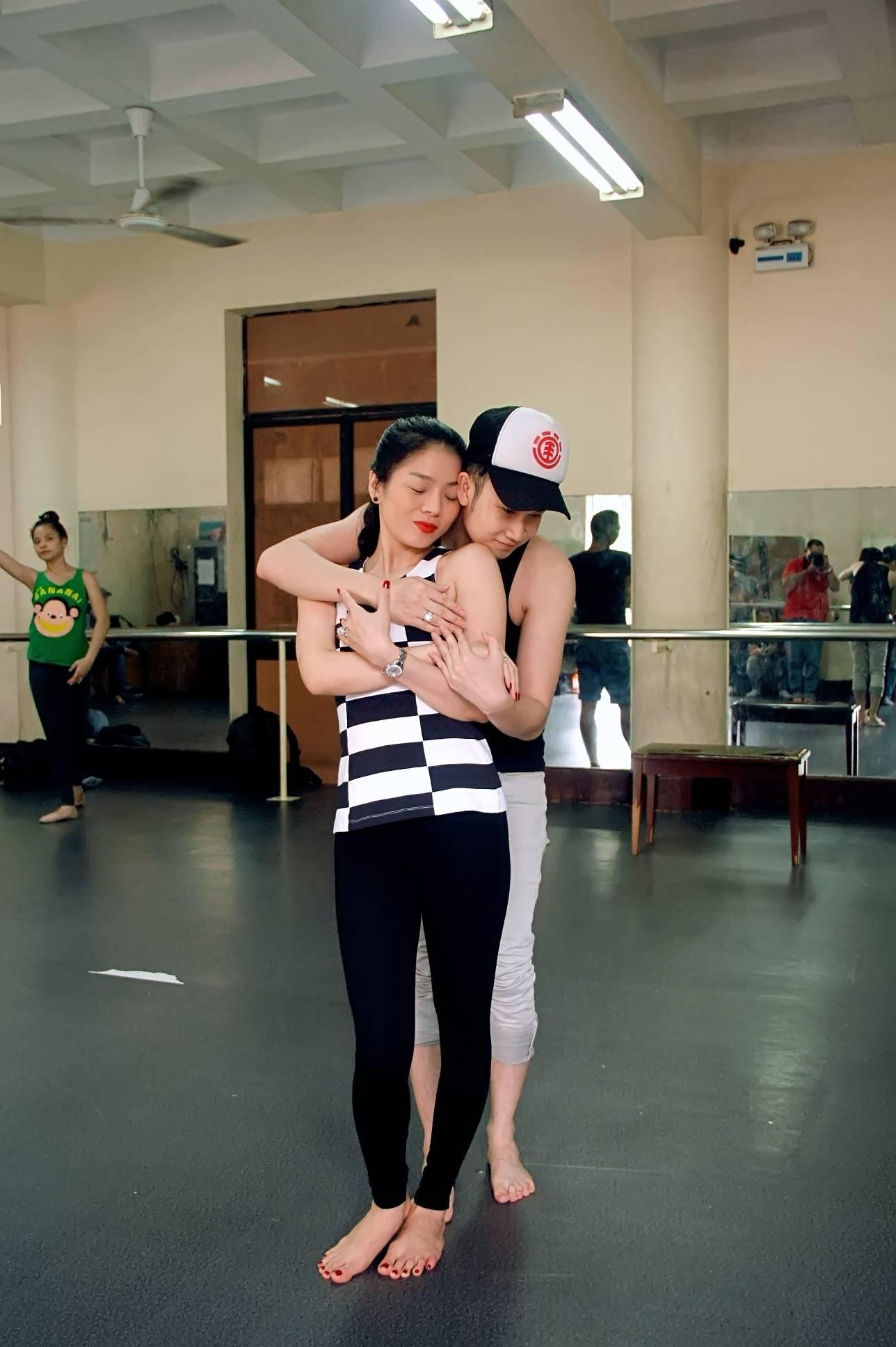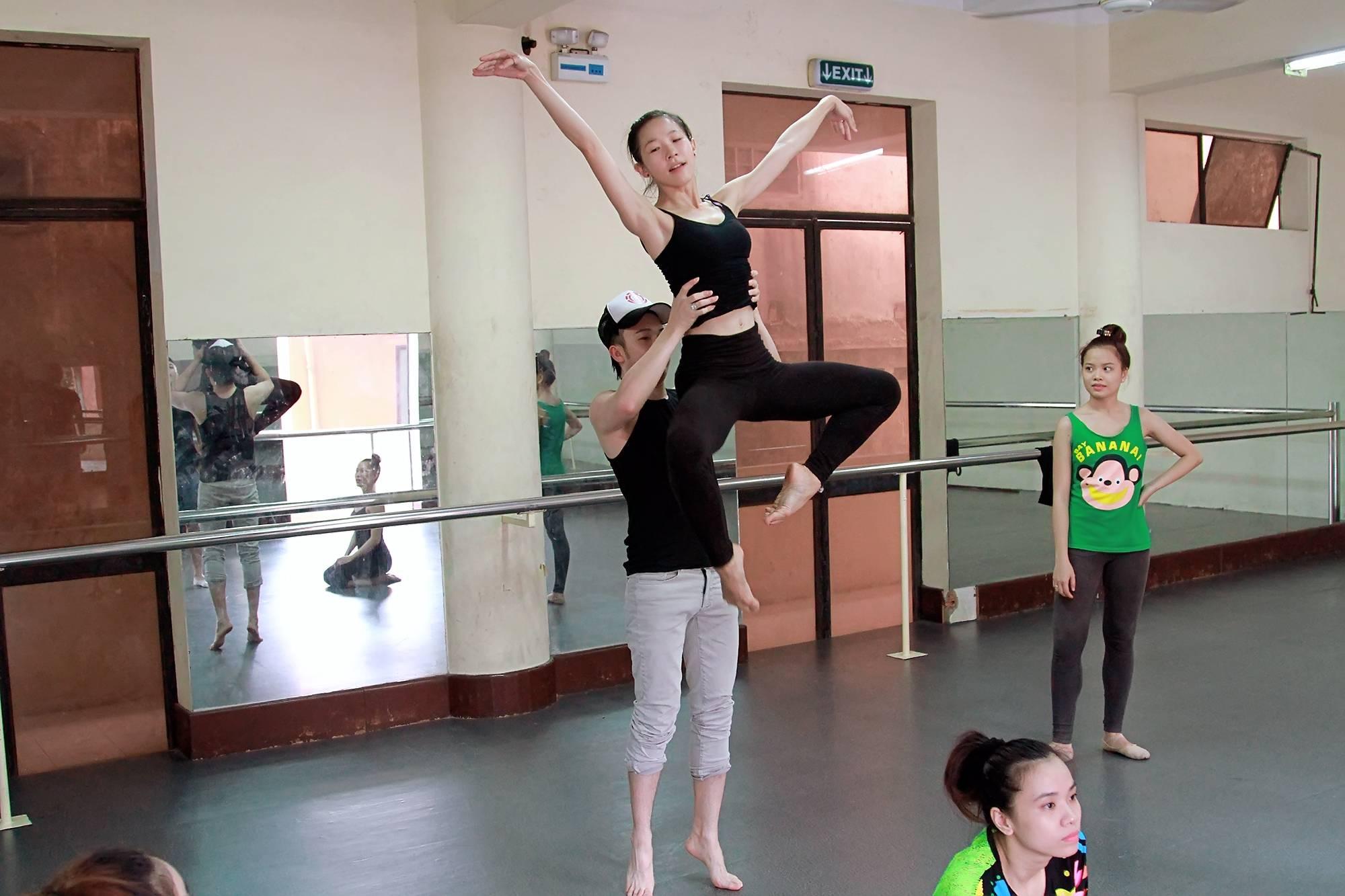 Đồng hành và chỉ dẫn cho Dương Triệu Vũ từng động tác kĩ thuật rất khó của ballet