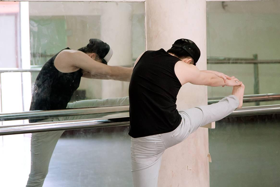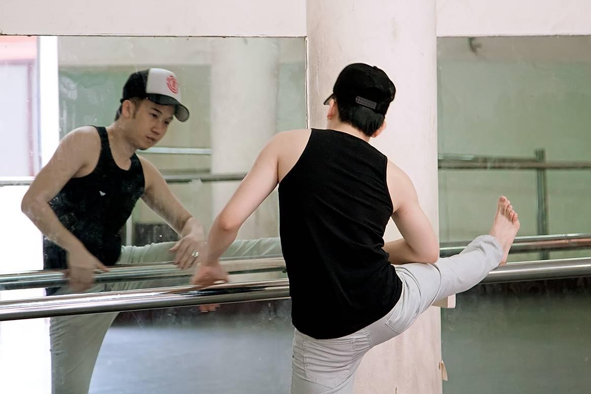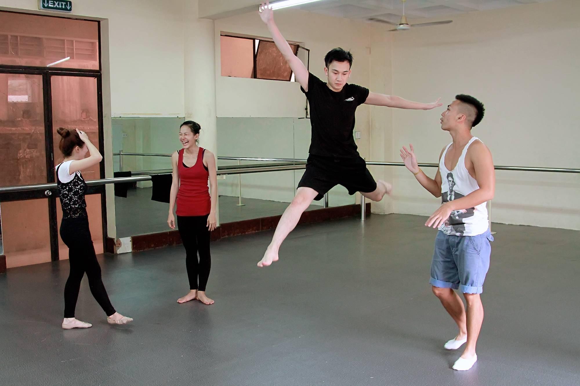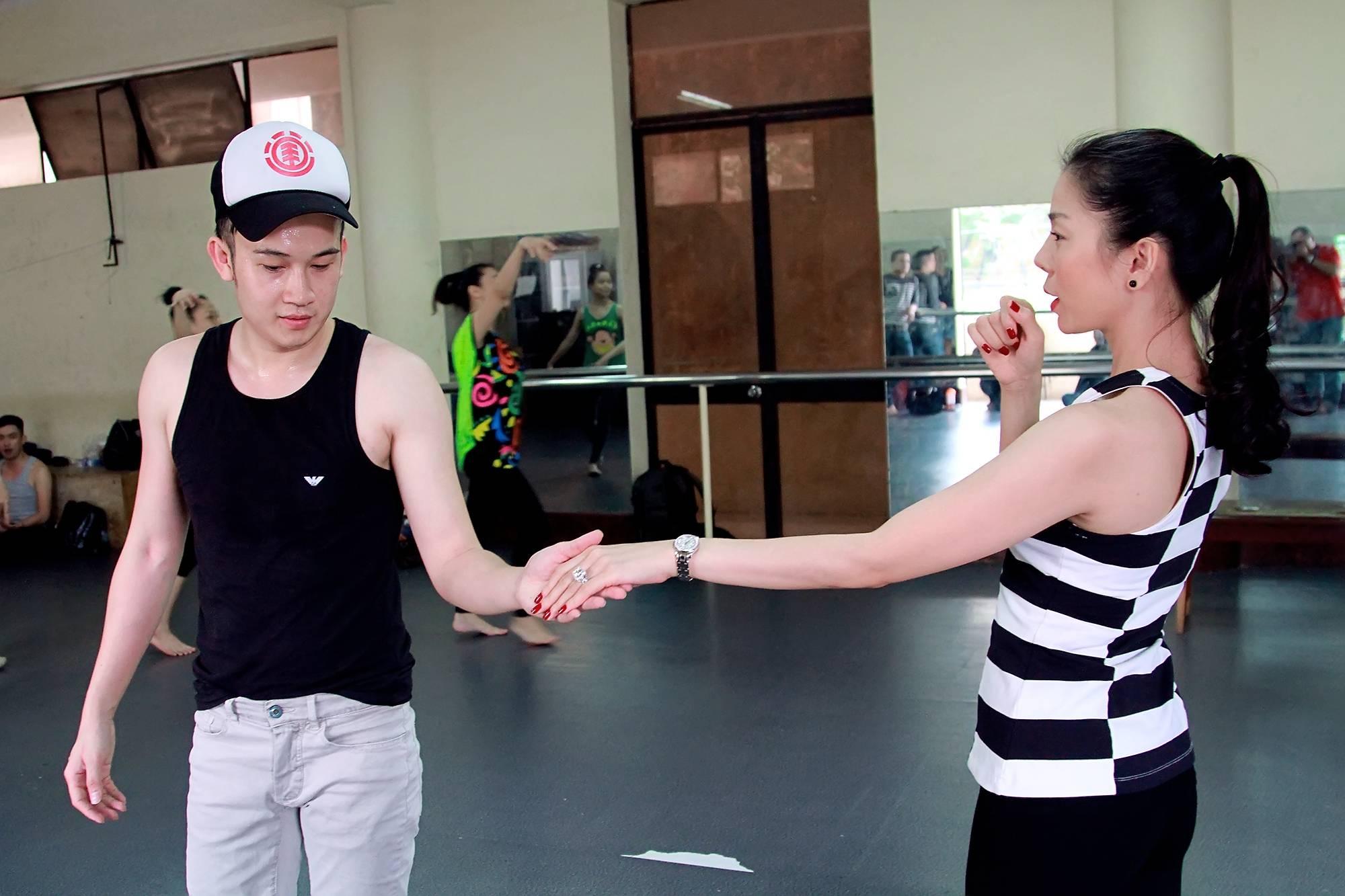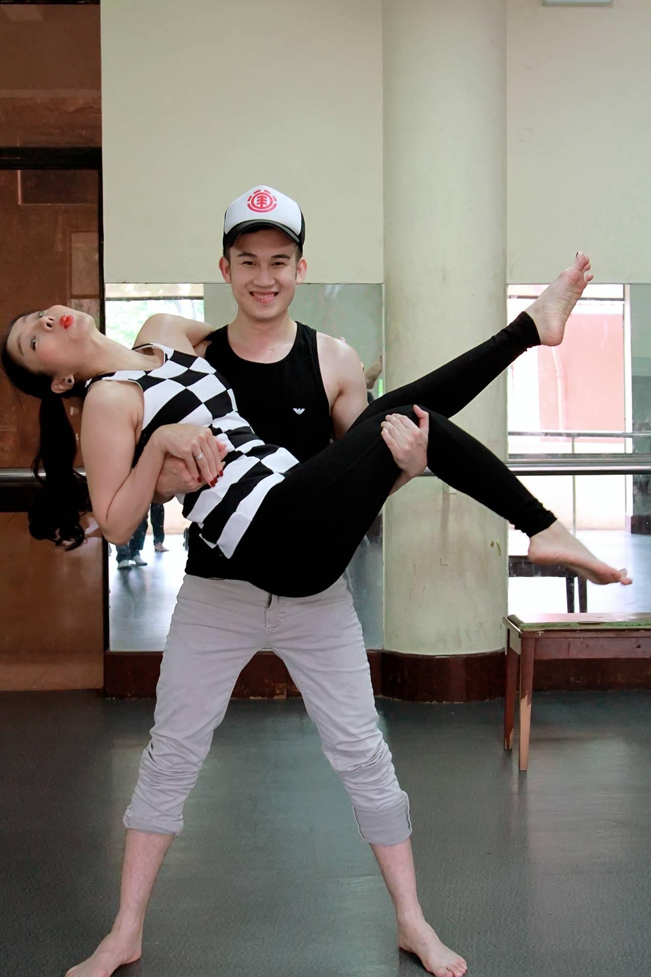 Đồng hành và chỉ dẫn cho Dương Triệu Vũ từng động tác kĩ thuật rất khó của ballet