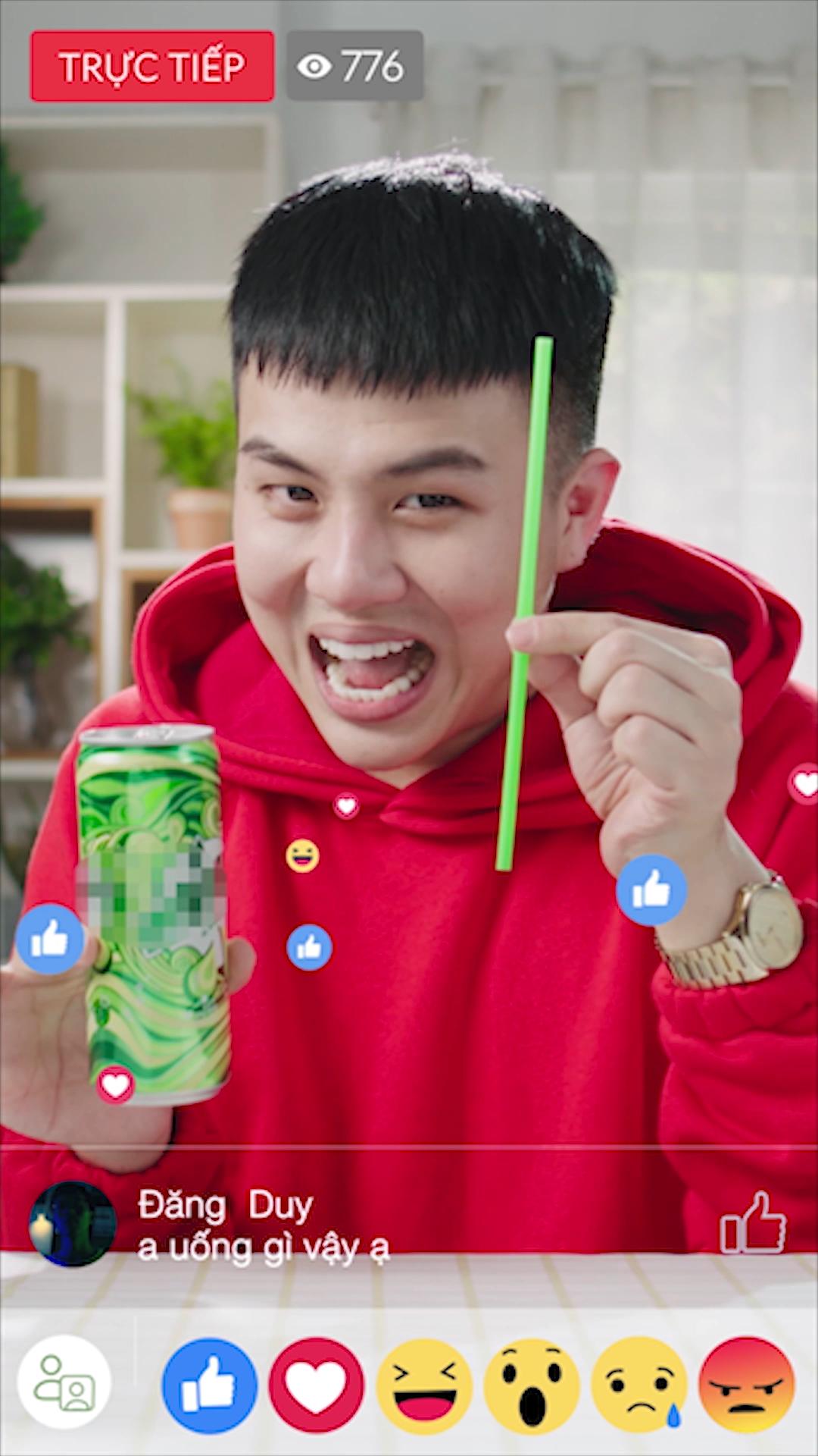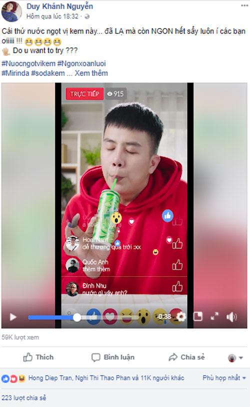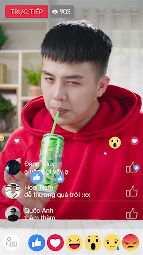 Duy Khánh đã bày trò “bắt trend”, livestream dạy các fan cách uống nước không trôi son, luôn có “thần thái”. Anh chàng hướng dẫn rất bài bản, từ việc phải cầm nước bằng 2 ngón tay cho tinh tế, sau đó rê nhẹ ống hút vào miệng lon, sau đó mới đưa vào miệng, cuối cùng là “môi lim dim, mắt chúm chím” rồi mới hút.