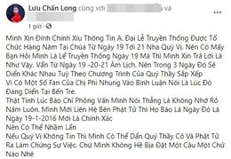 Chưa hết, Đại Lễ Truyền Thống tại chùa Đ.T.L (địa điểm Lưu Chấn Long cung cấp) chỉ diễn ra vào ngày 19/1 âm lịch hàng năm, không phải thời gian như nam ca sĩ này đưa ra là 21/1 âm lịch.