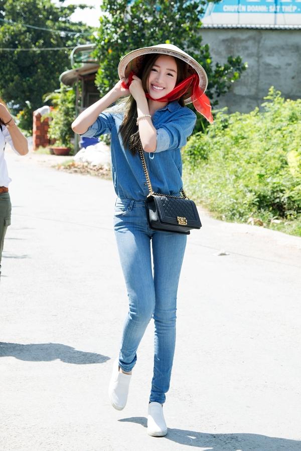 Mới đây, Elly Trần dành thời gian đến huyện Cái Be, tỉnh Tiền Giang tham gia một số hoạt động từ thiện. Bà mẹ hai con diện bộ trang phục jeans năng động, khác hẳn với hình tượng gợi cảm thường ngày. Kiểu tóc búi gọn, không chải chuốt cầu kì của người đẹp dễ tạo thiện cảm trong lần xuất hiện này.