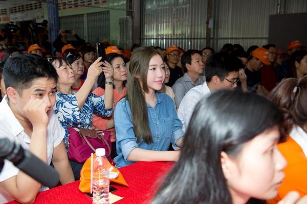 Tại buổi lễ, dù thời tiết nắng nóng và đông người, thần thái của người đẹp vẫn tươi tắn, rạng rỡ. Elly Trần chia sẻ, cô rất vui khi được đóng góp một phần công sức nhỏ khiến cuộc sống của người dân tốt đẹp hơn.
