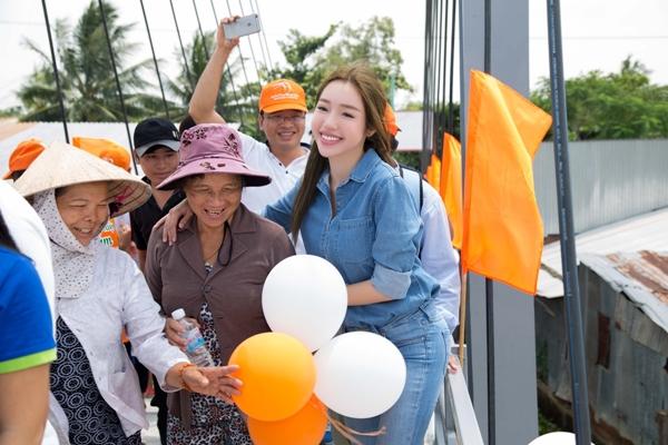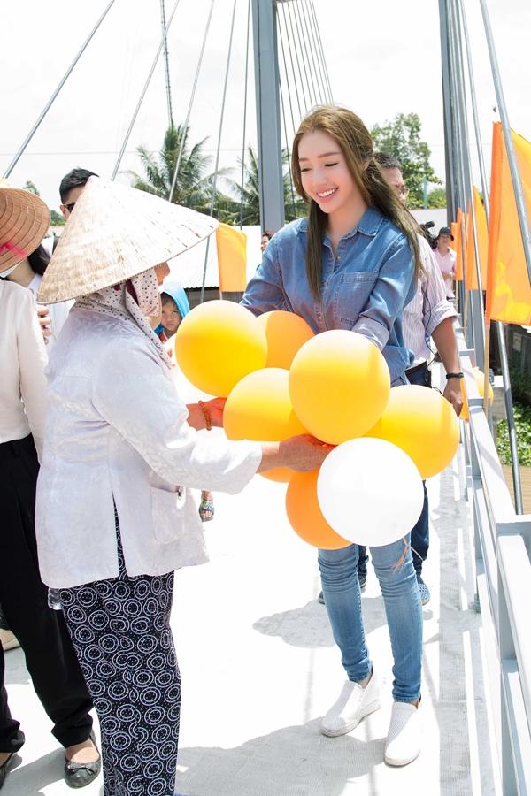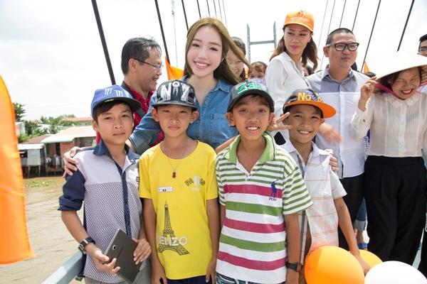 Trên chiếc cầu mới, Elly Trần có cơ hội giao lưu trực tiếp cùng nhiều người dân địa phương. Đặc biệt, khoảnh khắc người đẹp dìu các cụ già qua cầu được ống kính máy ảnh ghi lại. Cử chỉ ân cần, nhẹ nhàng, kèm những lời động viên khiến Elly ghi điểm cùng người dân có mặt.
