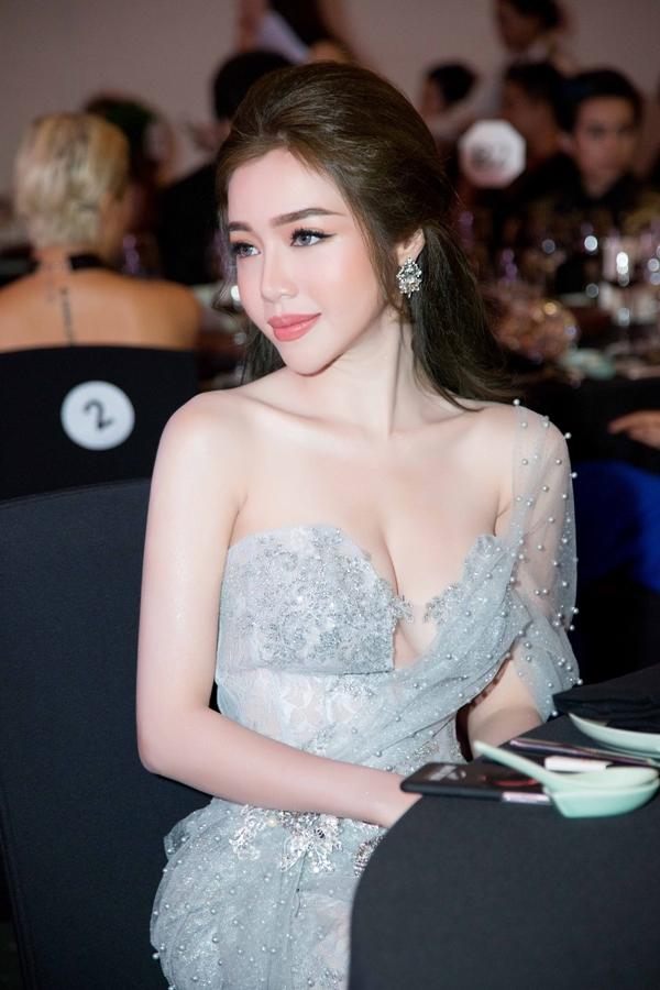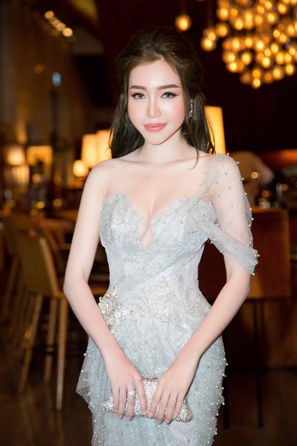 Chiếc váy đuôi cá gam màu lam tôn lên những đường cong quyến rũ và số đo ba vòng đáng ngưỡng mộ của bà mẹ hai con. Đặc biệt, người đẹp không quên nhấn nhá thêm vẻ quyến rũ bằng đôi môi màu cam nude tinh tế.