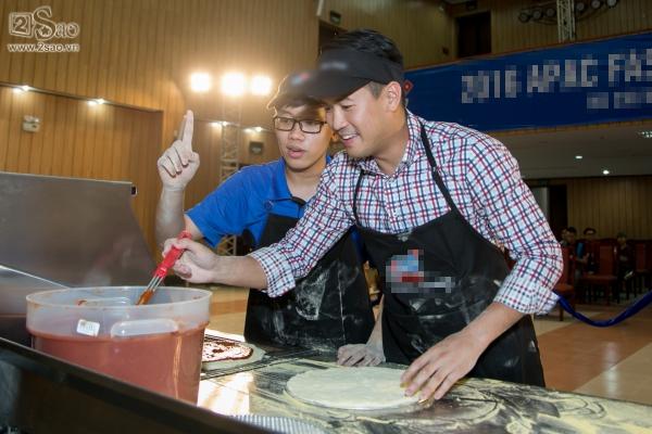 làm bánh pizza và cùng thi tài. Anh chàng doanh nhân điển trai này không ngại
