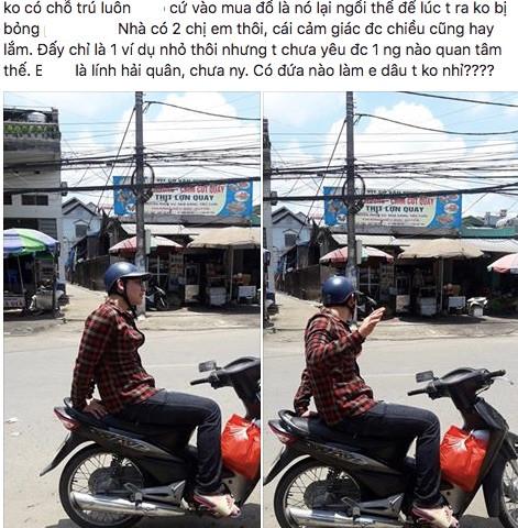 Cậu em trai tâm lý ngồi che cho yên xe máy đỡ nóng để chị gái ngồi. Ảnh chụp màn hình.