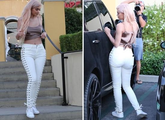 Cách đó vài ngày, Kylie Jenner diện một bộ cánh kiệm vải khác khi đi chơi cùng bạn trai. Cô mặc áo dây mỏng manh khoe trọn vòng eo, cùng chiếc quần cách điệu gợi cảm.