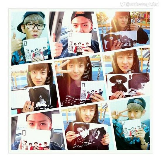 Trong bức ảnh đăng tải, fan có thể nhìn thấy Baek huyn (Bacon) và Sehun (Maknae) của EXO cùng nhau “khoe khéo” bìa đĩa của Shinee trên tay và ra dấu “thumb up” với sự đáng yêu của mình. Còn anh chàng điển trai Chan Yeol – Happy Virus lại PR cho tiền bối Shinee bằng loạt ảnh selca với đủ dấu tay “V – sign” hay “thumb up” khiến trái tim các fan nữ tan chảy.