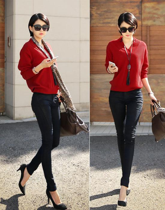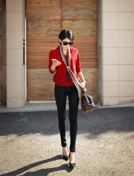 Áo len đỏ luôn khơi gợi sự nồng ấm và xua tan giá lạnh ngày đông. Bạn nên