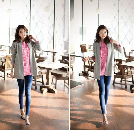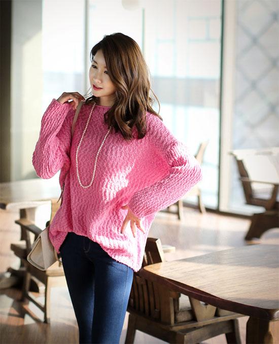 chiếc áo len hồng dáng suông kết hợp quần skinny, bạn sẽ trông rất sành điệu