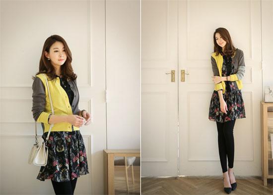 Khi diện váy hoa văn, legging đen, bạn có thể mix thêm một chiếc áo len lửng