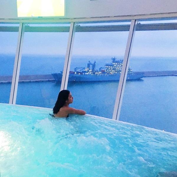 Lan Khuê khoe hình ảnh vai trần sexy bên hồ bơi với caption là lời
