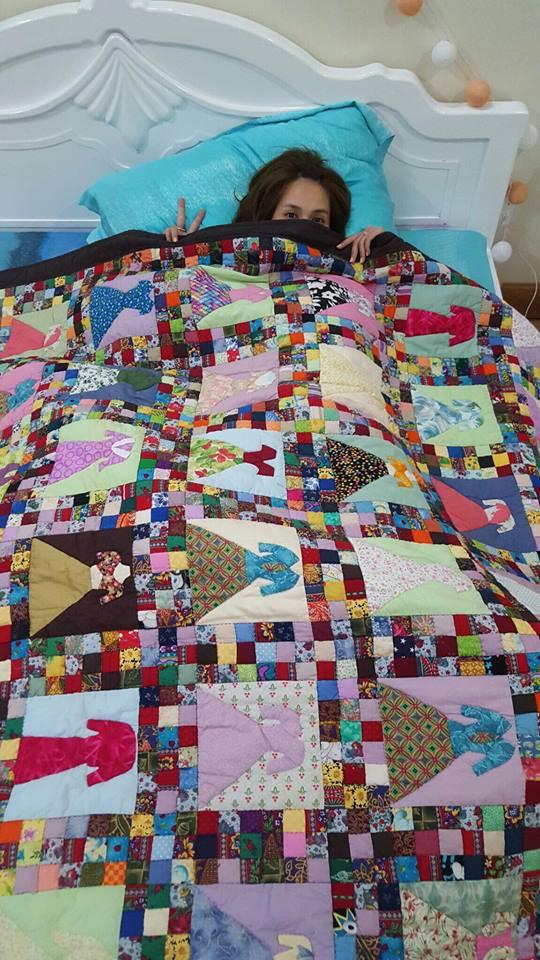 Tú Vi hào hứng khoe: Thích cái mền kiểu này từ nhỏ òi, thích mãi không có biết chỗ mua...