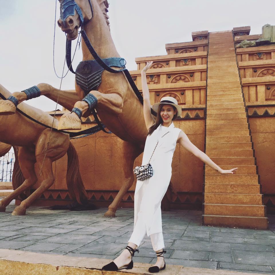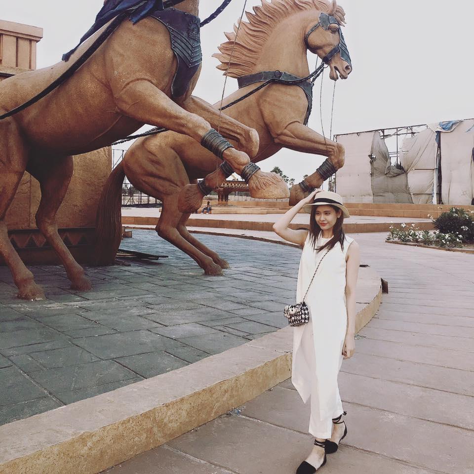 Trương Quỳnh Anh thích thú khoe phim trường: "Phim trường Ramoji rộng quá em làm dáng chụp hình mỏi luôn. Rộng nhất Châu Á đôi chân nhỏ bé này làm sao đi hết..."