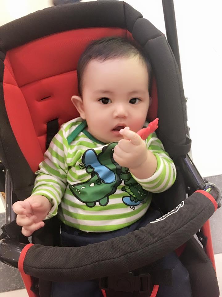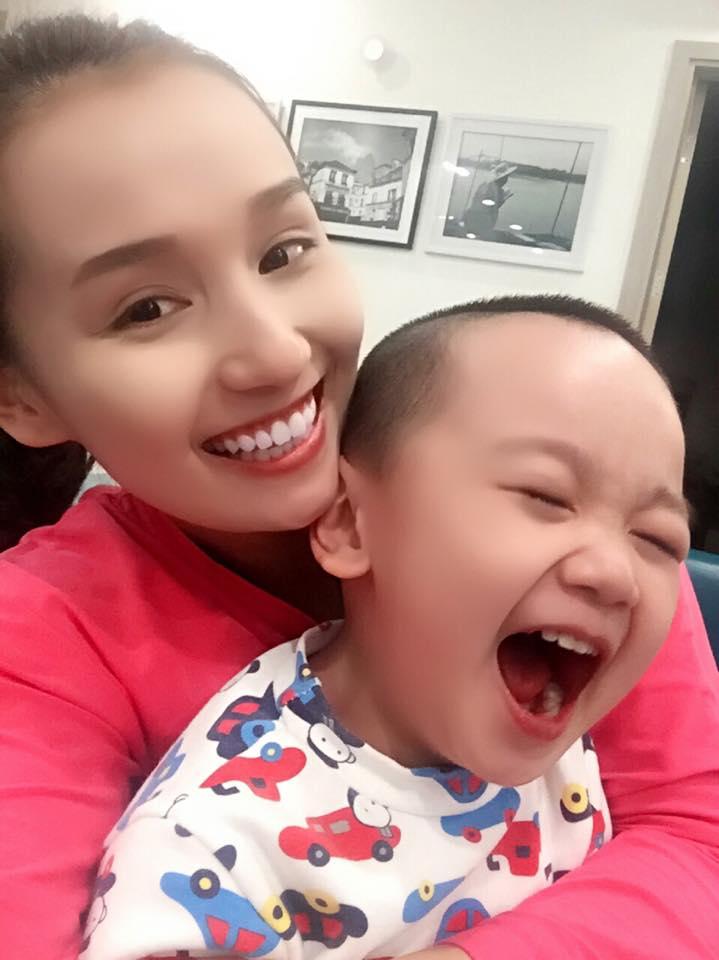 Subeo thích thú khi được vui chơi bên mẹ, biểu cảm đáng yêu của Subeo rất thu hút người đối diện vì cậu bé rất duyên.