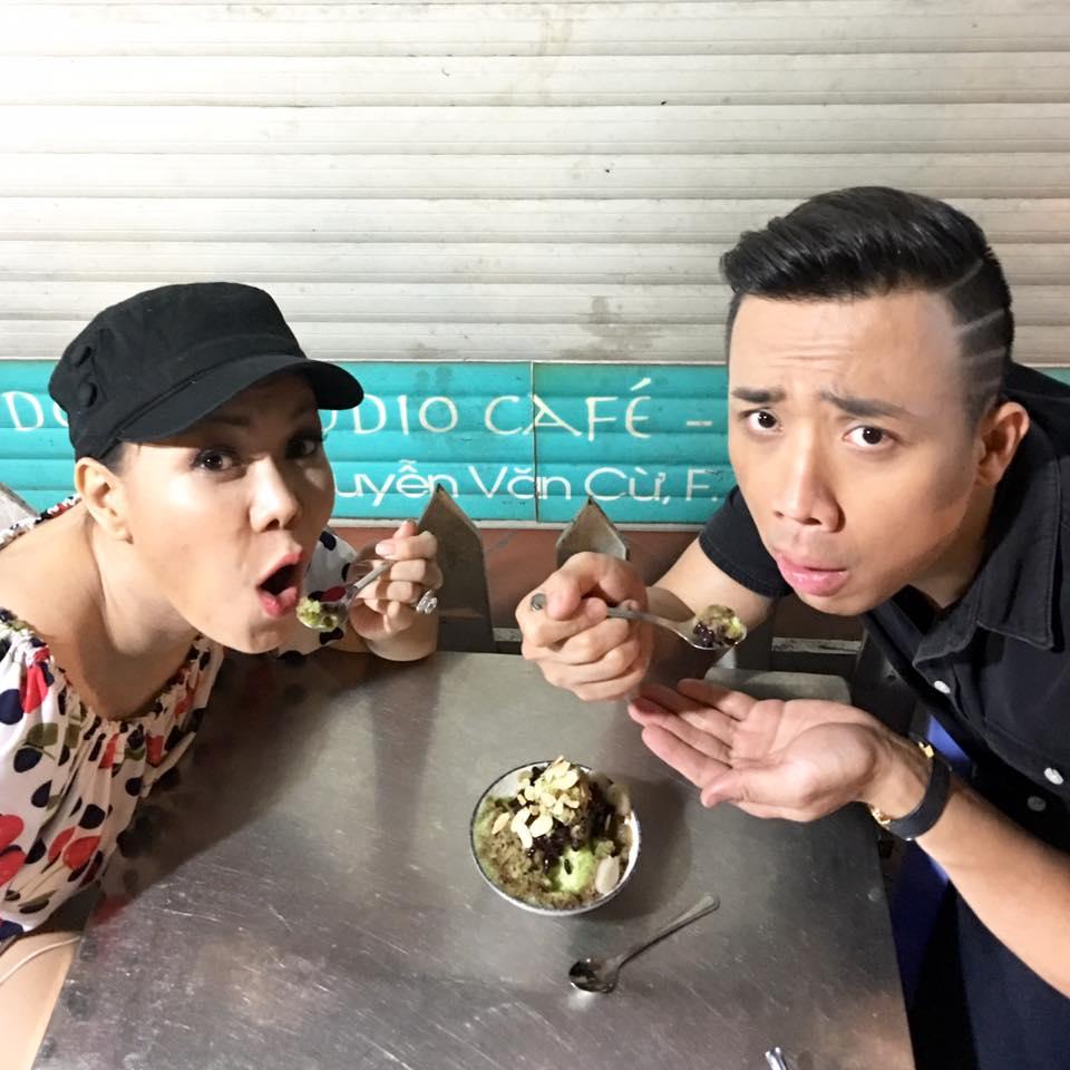 Trấn Thành: "Tráng miệng lề đường. Sợ mập nên 1 chén ăn hai người".