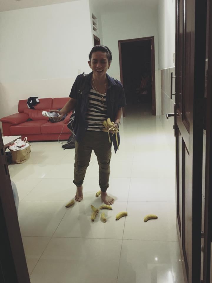 Khánh Thi chia sẻ khoảnh khắc đời thường của ông xã: Chuối rớt nửa đêm. Khoảnh khắc
