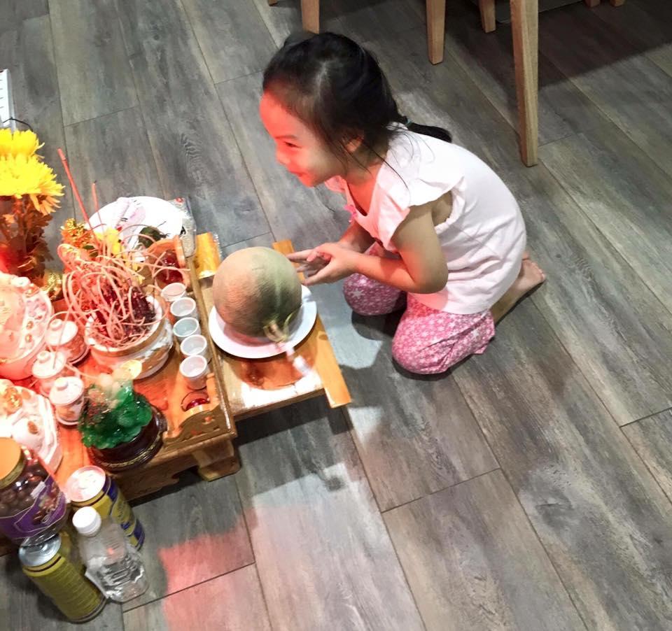 không thì thấy cảnh đang ngồi chắp tay, miệng lẩm bẩm tâm sự với ông Địa: